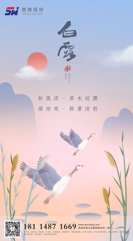 秋空雁度青天遠(yuǎn),疏樹蟬嘶白露寒。晝夜溫差較大,夜間會(huì)感到一絲絲的涼意,明顯地感覺到?jīng)鏊那锾斓絹怼?quot;白露"代表著暑熱的結(jié)束,萬(wàn)物隨寒氣增長(zhǎng),逐漸蕭落、成熟。